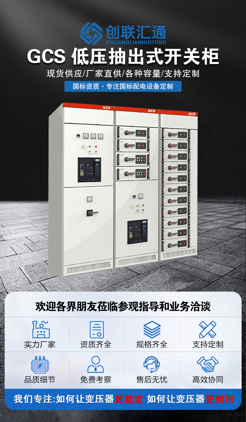 由抽屜單元組成的成套柜。220V控制電源引自本柜內專設控制變壓器供電的公用控制電源,公用控制電源采用不接地方式控制變壓器,留有24V電源供需要使用說電信號燈時采用。