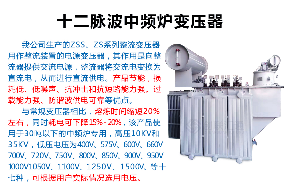 十二脈沖中頻爐整流變壓器適用于冶煉廠、特別是鑄造廠、大型用電企業等。